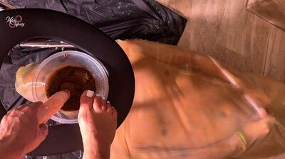 Mistress Infinity loved an organised house and a cleaned one. It was the reason she had a cleaner over because with her schedule, she was unable to maintain the house. Today, she found the dishes undone and she went and found the slave outside basking and she was not happy. She dragged him back to the house and fed him leftovers mixed with poo and even some plain poo just to show him how unhappy she was